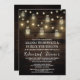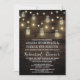 Rustikale Mason Jar Probe Dinner Einladungen - mit einem bedruckten Holzhintergrund mit Saitenbeleuchtung und beleuchteten Mason-Gläsern.