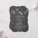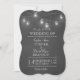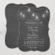 Rustikales Hochzeitsdesign mit hängenden Maurergläsern, Saitenleuchten auf einem Chalkboard-Hintergrund. Benutzen Sie das Tool Anpassen, um Ihre Informationen hinzuzufügen. Für mehr, besuchen Sie bitte meine rustikale Mason Jar String Lights Wedding Collection.