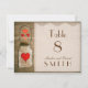 Diese rustikale Mason Glas mit Herz-Tischnummer-Karten sind Teil eines kompletten Hochzeitseinladung Set.
