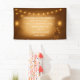 Feiern Sie Ihren besonderen Tag mit diesem rustikalen Hochzeitsbanner mit glühenden Mauerkirschen, hängenden Saitenlichtern und einem sanften Leuchtturm für Ihren eigenen Text. Dieses Banner-Design ist perfekt für Stallhochzeiten, Empfänge im Freien oder rustikale Landfeste geeignet und vereint Wärme und Eleganz. Personalisieren Sie die Namen des Paares, das Hochzeitsdatum und die Veranstaltungsdetails, um einen unvergesslichen Rahmen für Ihre Zeremonie oder Ihren Empfang zu schaffen.