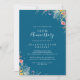 This rustic meadow botanical 50th wedding anniversary invitation is perfect for a modern event. The design features seamless hand-painted yellow, navy, blue, yellow, pink, and blush wildflowers with botanical leaves in a blue background.
