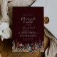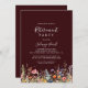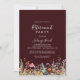 This rustic meadow botanical retirement party invitation is perfect for a modern event. The design features seamless hand-painted yellow, navy, blue, yellow, pink, and blush wildflowers with botanical leaves in a deep burgundy background.
