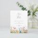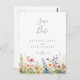 This rustic meadow botanical save the date postcard is perfect for a garden wedding. The design features seamless hand-painted yellow, navy, blue, yellow, pink, and blush wildflowers with botanical leaves.