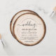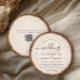 Our custom round rustic yet modern wood grain barn Wedding Invitation combines a natural tree slice with elegant script typography to create a unique wood look invitation with a romantic feel. The text on the invitation is written in an elegant script font, exuding sophistication and grace. The script font adds a touch of formality and elegance to the overall design, and the QR code on the back makes it very convenient!