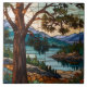 Rustic mountain range landscape stain glass fliese