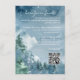 Theme Parties' Aquarellberge rustikale Honeymoon Fund dunkle Thema Gehäuse Karte Design mit Aquarellbäumen und Berge Set auf einem dunkeldunkelblauen Aquarell Hintergrund. Die Typografie verbindet traditionelle Schrift mit modernem, handgeschriebenem Text. #HoneymoonFund #DustyBlueWedding