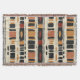 Earthy geometric pattern blanket inspired by tribal mudcloth textiles, featuring hand-painted rectangles, diamonds, and triangles in charcoal black and terracotta on a textured beige background. A warm boho design ideal for rustic décor lovers, artisan style fans, and anyone drawn to earthy geometric aesthetics.