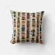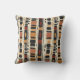 Earthy geometric pattern throw pillow inspired by tribal mudcloth textiles, featuring hand-painted rectangles, diamonds, and triangles in charcoal black and terracotta on a textured beige background. A warm boho design ideal for rustic décor lovers, artisan style fans, and anyone drawn to earthy geometric aesthetics.