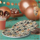 Earthy geometric pattern paper plate inspired by tribal mudcloth textiles, featuring hand-painted rectangles, diamonds, and triangles in charcoal black and terracotta on a textured beige background. A warm boho design ideal for rustic décor lovers, artisan style fans, and anyone drawn to earthy geometric aesthetics.