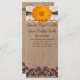 Das Oberteil ist farbenfroh orangefarben, gerberfarben und mit bedrucktem Spitzen- und Zwirndesign versehen. Der Hintergrund ist ein braunes, Vintag strukturiertes Papier. Obwohl es strukturiert aussieht, beachten Sie bitte, dass es sich um ein glänzendes, glänzendes Druckprogramm von 4" x 9" handelt. Dieser Garnbogen ist nur ein DRUCKER DESIGN, er ist kein wirklicher Bogen. Sie erhalten die LOOK eines mehrschichtigen Programms, aber zum günstigen Preis eines gedruckten Hochzeitsprogramms (glänzendes Finish). Fügen Sie Ihre individuelle Hochzeitsprogrammentarisierung sowohl der Vorder- als auch der Rückseite dieser Hochzeitsvorstellung hinzu. Verwenden Sie die Schaltfläche "Anpassen" oder fügen Sie den Vorlagenfeldern einfach Informationen hinzu. Auf der Rückseite ist viel Platz für weitere Informationen und danke. Diese sind perfekt für Brautpaare, die nach rustikalen Hochzeitsprogrammen, Hochzeitsprogrammen auf dem Land und Vintage-Hochzeitsprogrammen suchen.