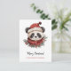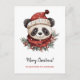 Rustikale Panda Weihnachten Weihnachten Postkarte. Rustikales Erdtönen-Design mit weißem Panda Bär mit Weihnachtsmannmütze und Winterbotanicals. Personalisierter Text.