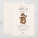 A cozy rustic Christmas design featuring a charming snowman dressed in a quilted patchwork coat, plaid scarf, and country hat. The warm earthy tones and vintage textures create a nostalgic farmhouse feel, perfect for winter gatherings, barn parties, or cozy family celebrations. A timeless and heartwarming invitation that captures the spirit of a country Christmas.