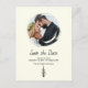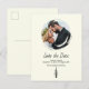 Rustic pine tree ivory wedding save the date announcement postcard, with a simple typography design. With customizable lettering, you add your own information. You also add your own photo to add personalization. Great for planning your special day with a boho style.