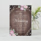 Rustic Pink Floral Wood & String Lights Wedding Einladung