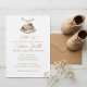 Celebrate your new arrival with this rustic western baby shower invitation. The design features a charming hand-painted sleeping pony resting near cowboy boots, accented by a lucky horseshoe banner and a classic tan plaid reverse side. It is an ideal choice for parents-to-be hosting a gender-neutral equestrian or ranch-themed celebration.