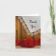 Passen Sie die charmante Rustikale Poinsettia Country Winter Wedding Dankeschön-Karte mit Ihrer persönlichen Dankeschön- und Dankesbotschaft an. Geeignet für Geschenke, die nach einem lässigen und dennoch klassischen ländlichen Bauernhof, rustikale Scheune oder Ranch Dezember Winter oder Weihnachtsfeiertag Thema Verlobung, Brautparty oder Hochzeit erhalten. Diese individuelle Wintergarten-Dankeschön-Notiz enthält ein Blumenfoto mit einem roten Poinsettia Blume Blüte, ein rotes Schleifenband und ein Leinentaschentuch mit Spitzen und braunem Holzhintergrund.