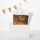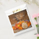 Füllen Sie diese charmanten rustikalen Pumpkins Fall Barn Hochzeit Dankeschön Sie Gefallen Taschen mit den Gastgeschenke für Ihr lässiges und dennoch klassisches September, Oktober oder November Herbst Brautparty oder Heirat Empfang. Diese Country chic Custom danke Ihnen Taschen ein malerisches Blumenfoto von kleinen orangefarbenen Kürbis, gelb und rot blühende Blume Blüten, weiß Brautschleier, Vintage Spitzen geschnitten Leinen Taschentuch mit braunem Barnholzhintergrund.