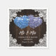 Decorate your rustic purple and blue wedding party with these elegant floral wedding paper napkins featuring floral hearts, string lights and white floral lace on a barn wood background.