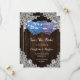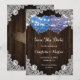 Romantic rustic purple and blue floral wedding save the date cards featuring hydrangea flowers against a barn wood background adorned with white floral lace and string lights.