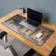 Diese lustige, rustikale Schreibtischmatte verfügt über zwei Cowboystiefel an einer Blockhüttenwand. Für den Western oder Pferdeliebhaber. Erstellt von Simply Farmhouse Press; Foto von Melanie Mauer auf Unsplash.