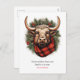 Send warm holiday greetings with this rustic farmhouse Christmas postcard featuring a majestic bull adorned in a festive red buffalo plaid scarf, surrounded by greenery and berries. Perfect for country-style celebrations, farmhouse décor lovers, or anyone who enjoys rustic holiday charm. A cozy and unique way to share your Christmas wishes with friends and family.