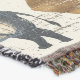 Bold tribal rhino pattern blanket featuring distressed black rhinoceros silhouettes paired with geometric mudcloth-style motifs in warm tan and charcoal on a textured beige background. A rugged, earthy design ideal for safari enthusiasts, boho decor lovers, and wildlife-inspired style fans.