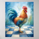 Bring bold farmhouse charm into your kitchen, dining room, or entryway with this beautifully illustrated rooster art print. Rendered in vibrant watercolor hues of blue, teal, gold, and rust, the proud rooster stands on a softly blended checkerboard floor with an atmospheric wash of cool blues behind him. The combination of classic country-style artwork and modern watercolor detail makes this 16" x 20" poster a standout piece for rustic homes, French country décor, farmhouse kitchens, and anyone who loves charming barnyard art. Printed on high-quality paper, it adds warmth, personality, and a touch of whimsical elegance to any space.