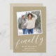 Teilen Sie mit diesen rustikalen chic Ankündigungskarten mit einem quadratischen Foto auf einem kraftvollen Hintergrund die Neuigkeiten Ihrer lang erwarteten Verlobung. "Endlich" erscheint in der weißen Kalligraphie-Skript, mit Ihrer Ankündigung, Namen und weiteren Details unten.