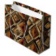 Warm geometric stripe pattern gift bag featuring tribal-inspired diamonds, zigzags, and textured vertical bands in earthy brown, terracotta, tan, beige, and charcoal tones. A cozy boho design ideal for southwestern décor lovers, rustic style fans, and anyone drawn to earthy, handcrafted aesthetics.