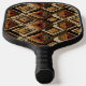 Warm geometric stripe pattern pickleball paddle featuring tribal-inspired diamonds, zigzags, and textured vertical bands in earthy brown, terracotta, tan, beige, and charcoal tones. A cozy boho design ideal for southwestern décor lovers, rustic style fans, and anyone drawn to earthy, handcrafted aesthetics.