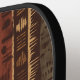 Warm geometric stripe pattern pickleball paddle featuring tribal-inspired diamonds, zigzags, and textured vertical bands in earthy brown, terracotta, tan, beige, and charcoal tones. A cozy boho design ideal for southwestern décor lovers, rustic style fans, and anyone drawn to earthy, handcrafted aesthetics.