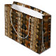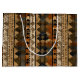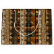 Warm geometric stripe pattern gift bag featuring tribal-inspired diamonds, zigzags, and textured vertical bands in earthy brown, terracotta, tan, beige, and charcoal tones. A cozy boho design ideal for southwestern décor lovers, rustic style fans, and anyone drawn to earthy, handcrafted aesthetics.