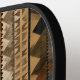 Warm geometric stripe pattern pickleball paddle featuring tribal-inspired diamonds, zigzags, and textured vertical bands in earthy brown, terracotta, tan, beige, and charcoal tones. A cozy boho design ideal for southwestern décor lovers, rustic style fans, and anyone drawn to earthy, handcrafted aesthetics.