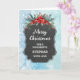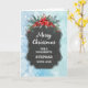 Frohe Weihnachten für Stiefvatkarte mit rustikalem Kalkbrettmuster und winterliche Blätter mit Poinsettias.