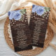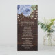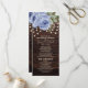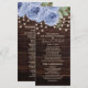 Rustikales dunkelbraunes Holz mit Saitenlampen periwinkle blauen Aquarell Blumenzauber Hochzeitsprogramm. Kontaktieren Sie uns für Hilfe bei der Anpassung oder der Anpassung von Produkten.