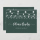 Diese rustikale Saite leuchtet grüne Menü Wahl uAwg postcard ist perfekt für eine klassische Hochzeit. Das Design zeichnet sich durch schöne handbemalte Saitenleuchten in einem grünen Hintergrund aus.