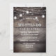Rustikales Land, Jubiläum des Scheunenholzes, Einladungen für die Erneuerung des Geländes - gewitterter, bedrückter Hölzerhof. Das Obergeschoss ist mit rustikalem Land, Vintagen Glaskeramiklampen und romantischen Outdoor-Lichtern geschmückt. Liest 'We Still Do' in Western-Schrift mit 'Vow Renewal' unter und Jubiläumsjahr oben in geschwungener Schrift. Details zum Jubiläumsjahr, einschließlich UAWG, finden Sie unten. Zurück hat einen passenden Hintergrund aus Holz. Hinweis: Alle Bilder werden gedruckt. Mit der Schaltfläche Anpassen Sie alles an - Schriftart-Stile, -größen, -farben oder -platzierungen. Elegantes Land lädt zum Sommer oder Herbst ein, rustikales Jubiläum-Party im Freien, Hochzeitsszenario im Scheunen und Hochzeitsstile zum Western oder zum Jubiläum. Wir haben mehr Jubiläumsfeiern Party Einladungen und passende Mason Jar rustikale Party Dekoration in unserem Zazzle.com/angela65 Shop.