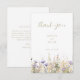 Express your gratitude with this elegant rustic wildflower wedding thank you card. Featuring soft summer meadow florals in delicate lavender, blush, and ivory tones with romantic gold script typography, this design perfectly complements your wedding invitation suite.