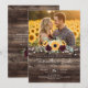 The front showcases your favorite engagement photo, creating a heartfelt and personal first impression for your guests. Paired with elegant script typography and clean, timeless layout, it perfectly highlights your names and wedding details while maintaining a soft, inviting aesthetic. The sunflower and deep burgundy rose florals add a stunning pop of color, making this design especially ideal for fall weddings, barn venues, and rustic-inspired celebrations.