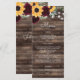 Complete your reception tables with this beautifully coordinated rustic wedding menu card featuring sunflowers and burgundy roses, designed to bring warmth and elegance to your dining experience. Set against a rich woodgrain background, this menu perfectly captures the charm of a countryside or barn wedding while maintaining a refined and polished look.