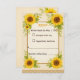 Diese rustikale RSVP-Karte ergänzt Ihre Hochzeitssuite mit Aquarellsonnenblumen und einem warmen Landgefühl. Die Gäste können die Teilnahme ganz einfach bestätigen und damit die perfekte Ergänzung zu Ihrem Set in der Scheune, im Freien oder in rustikalen, schicken Hochzeitsstätten bilden. Personalisieren Sie Ihre Antwortoptionen und geben Sie Details zurück.