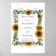 Rustic sunflower wedding welcome poster featuring watercolor sunflowers and greenery. Text editable in the Zazzle editor.