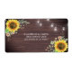 Diese Adressetiketten zeichnen sich durch ein rustikales Sonnenblumendesign aus, das mit Holz und Wandkeramikleuchten versehen ist. Verwenden Sie sie auf Ihren Hochzeitsempfang. Personalisieren Sie diese Labels durch Hinzufügen Ihrer eigenen Adresse. Diese Labels sind Teil einer Sammlung, die passende Hochzeitswaren und Geschenke umfasst. Bitte besuchen Sie die Sammlungs-Seite in unserem Geschäft, um die komplette Palette von Hochzeit-und Brautprodukten, die Sie personalisieren können für Ihre Hochzeit zu sehen.