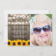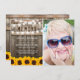 Die Entsendung einer Danksagung ist eine einfache Möglichkeit, denjenigen zu danken, die Ihnen Trost während Ihrer Trauerzeit gezeigt haben. Diese Country-schicke Beileid-Karte verfügt über einen rustikalen Holzhintergrund, ein Foto der verstorbenen Person, hellgelbe Sonnenblumen, Saitenleuchten, das Sprichwort "In Loving Memory", ihren Namen, das Geburtsdatum/das Sterbedatum und eine personalisierte Danknote.