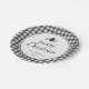 Celebrate Christmas in rustic style this year and use this black and white gingham paper plate to elevate your party table. This paper plate features a classic black and white farmhouse gingham pattern as background on top of which sits your season's greetings in rustic black font on a white circular shape. At the top of your greetings are three charming hand-drawn vintage Christmas trees, as an added touch of style, and at the bottom you'll find your family name and the current year in rustic vintage serif font. If rustic and vintage Christmas is your thing, this paper plate and the collection it sits in may be just what you need. This paper plate is ready for you to customize. To make it yours, click the Personalize link and follow the instructions.
