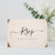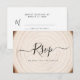 Set the tone for your rustic celebration with this wedding RSVP card featuring a soft wood grain tree ring background and elegant black script typography. The front showcases a large “RSVP” over subtle tree rings, while the back includes clean response lines for guest names, accept/regret options, and your reply-by date. Perfect for woodland, barn, outdoor, and country weddings, this card pairs beautifully with wood slice décor, greenery, and neutral invitation suites. Personalize the wording, fonts, and date in minutes to create a cohesive response card that matches your invitations and other rustic stationery pieces.