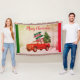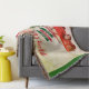 Christmas throw blanket with rustic vintage red truck with family names sign and carrying Christmas tree. So warm vintage style for holiday season. Personalize the names, family name and the current year.