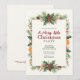 Charming watercolor Christmas invitation with hand-painted holly leaves, pine branches, and red berries creating a natural botanical border. The soft, artistic style brings warmth to your holiday gathering announcement. Perfect for cozy Christmas parties and intimate seasonal celebrations with its elegant cream background and festive greenery.