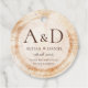 The design features a background of woodcut with rings, adding a touch of rustic charm to the overall aesthetic. Personalize the template with your own name initials, creating a monogram look that represents you as a couple. These round gift tags provide a glimpse of the rustic wedding feel your guests can expect at your upcoming celebration.