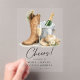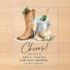 Celebrate your love story with this elegant rustic western wedding invitation featuring cowboy boots, champagne, and soft floral details.